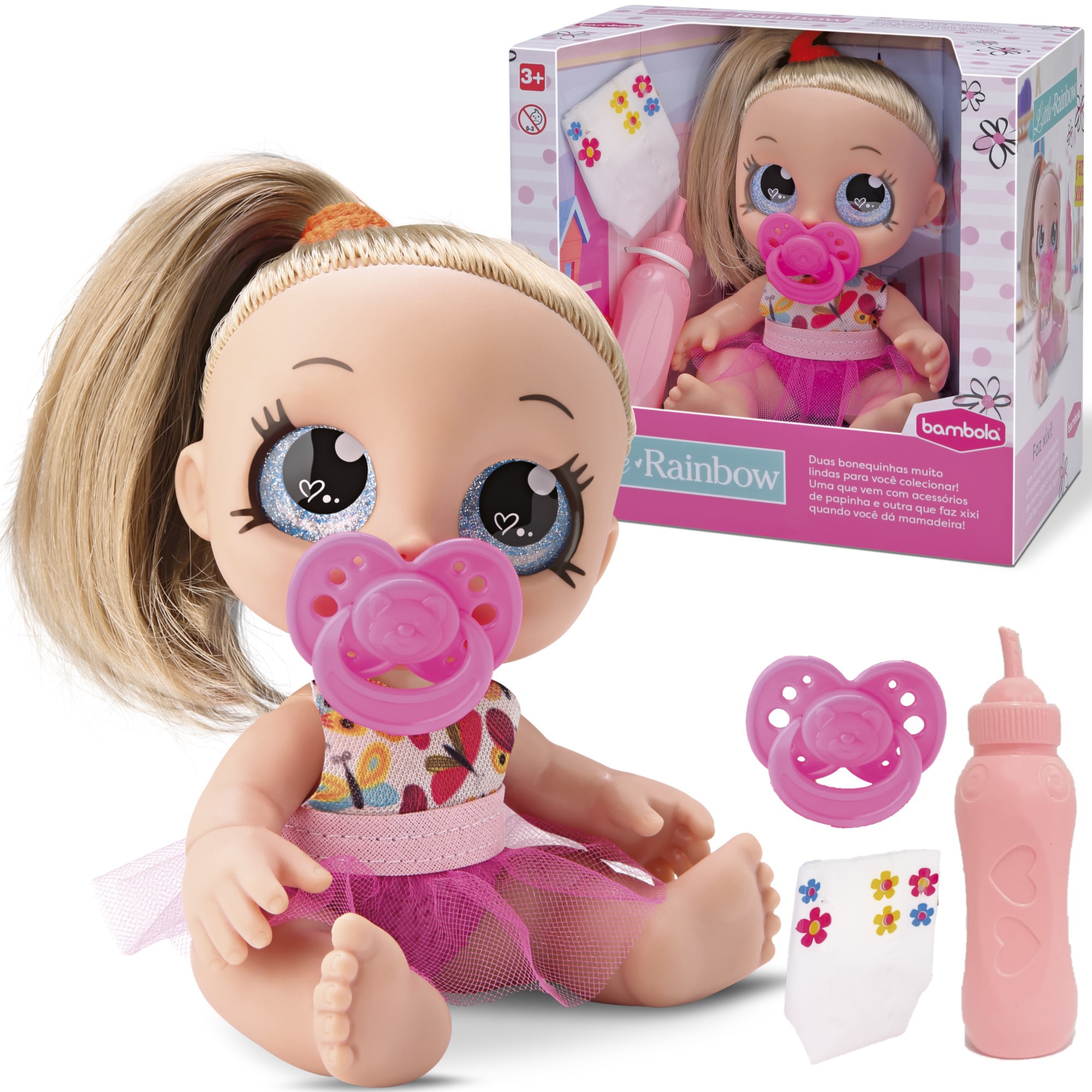 Descubra a magia de cuidar com a Boneca Little Rainbow Faz Xixi! Essa adorável bonequinha permite que as crianças explorem o mundo do faz de conta com muita diversão e carinho. Basta dar a mamadeira para sua bebê, e ela faz xixi de verdade! Completa com acessórios como mamadeira, fraldinha e chupeta, essa boneca é perfeita para incentivar o cuidado e a imaginação.