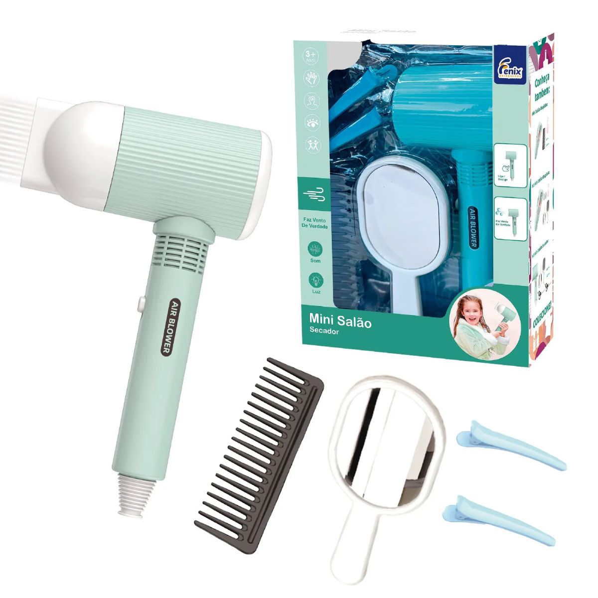 Kit com secador e acessórios ideal para simular atividades do cotidiano, incentivando a criatividade e o faz de conta das crianças. Perfeito para momentos de diversão e desenvolvimento imaginativo.
