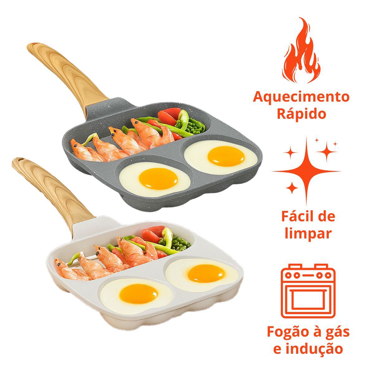 Descubra a versatilidade dessa frigideira projetada para tornar seu café da manhã ainda mais delicioso e divertido. Com seu design inovador de duas divisórias em formato de coração e uma divisória para grelhar, você pode preparar omeletes suculentos, hambúrgueres perfeitos, bacon crocante e panquecas irresistíveis! Podendo realizar diferentes preparos ao mesmo tempo e sem misturar sabores.