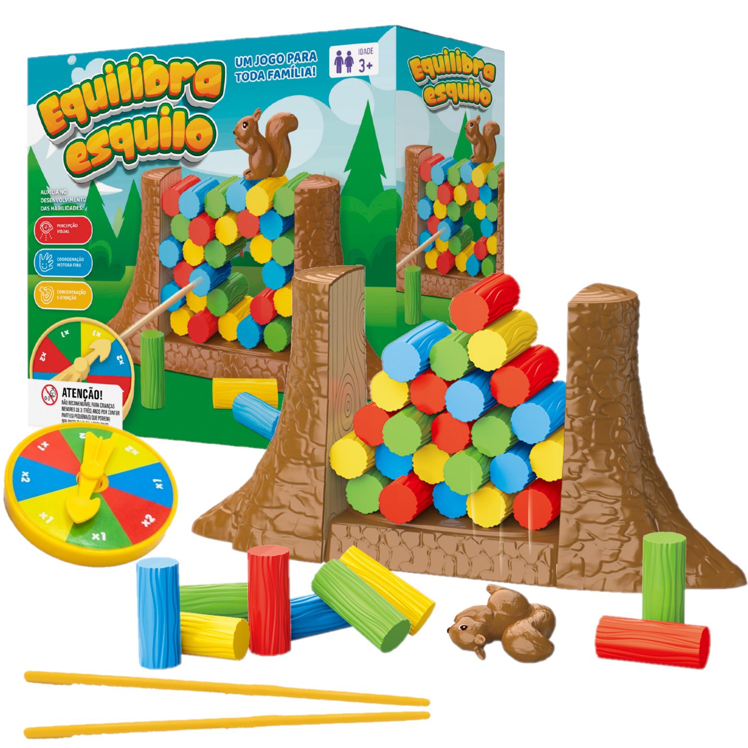Jogo Equilibra Esquilo Com Roleta Infantil Pais e Filhos